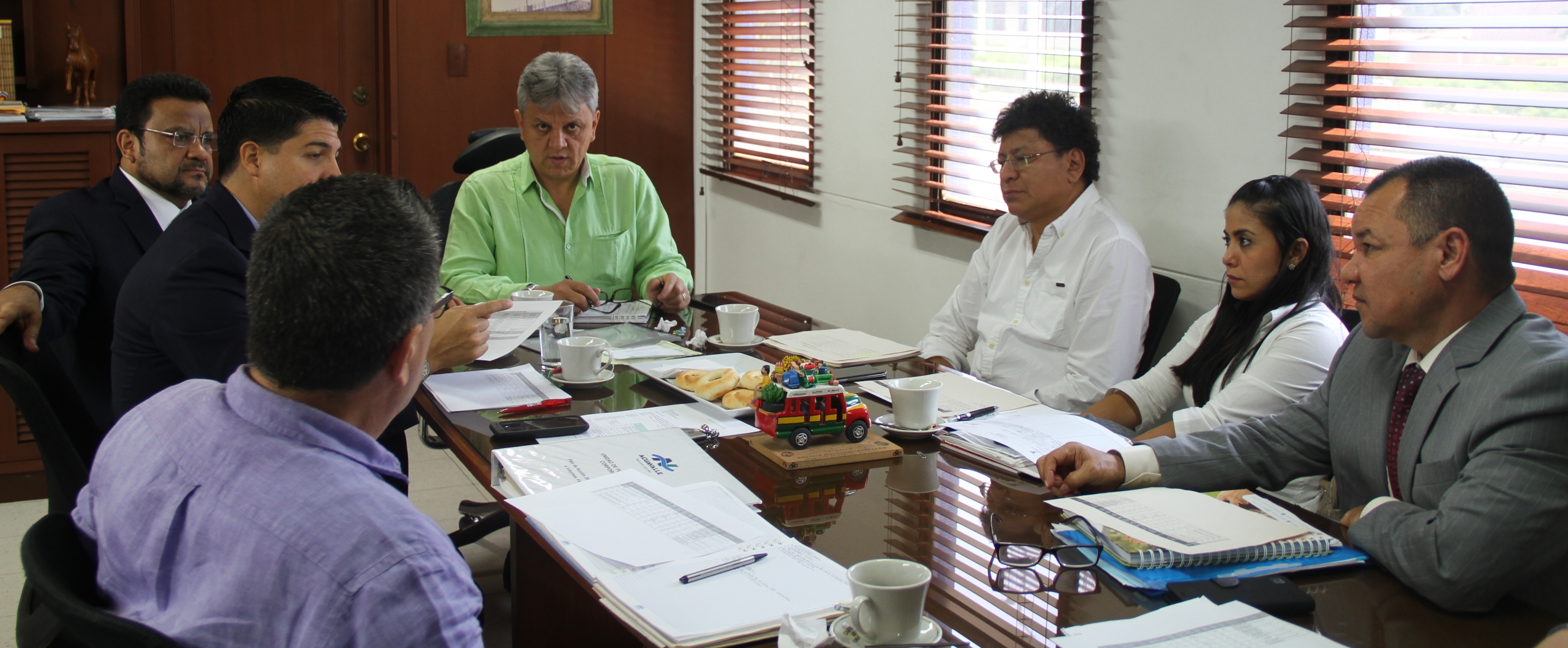 Con el objetivo de analizar los proyectos de agua potable y saneamiento básico que requiere el departamento del Valle del Cauca y que fueron priorizados por la Gobernadora Dilian Francisca Toro Torres, en el Contrato Paz, se desarrollo hoy una reunión donde participaron el Coordinador del Contrato Paz, Carlos Andrés Clavijo, el Asesor para los temas del sector de agua y medio ambiente, Carlos Calderón, el Gerente de Acuavalle, Guillermo Arbey Rodríguez y el Gerente de Vallecaucana de Aguas, Luis Alfonso Chávez Rivera. Ver Comunicado en PDF.